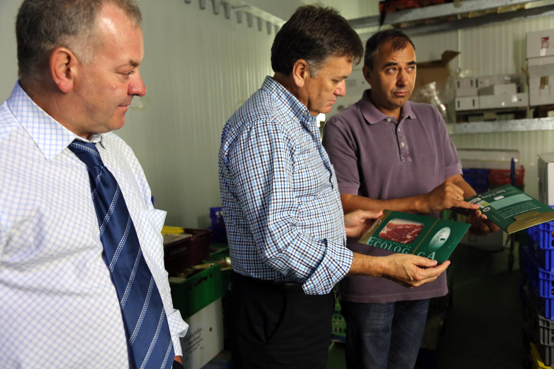 El alcalde aprovechó la visita del Presidente de la Diputación para mostrarle las instalaciones de elaboración embutidos de producción ecológica Biobardales que se ha establecido en Orejana y que ha creado 12 puestos de trabajo. La empresa elabora 10.000 kilos semanales de derivados porcinos que se destinan en un 80% a la exportación y que se pueden adquirir en los mejores establecimientos de alimentación en diferentes capitales europeas, además de en la tienda que existe en la propia fábrica.